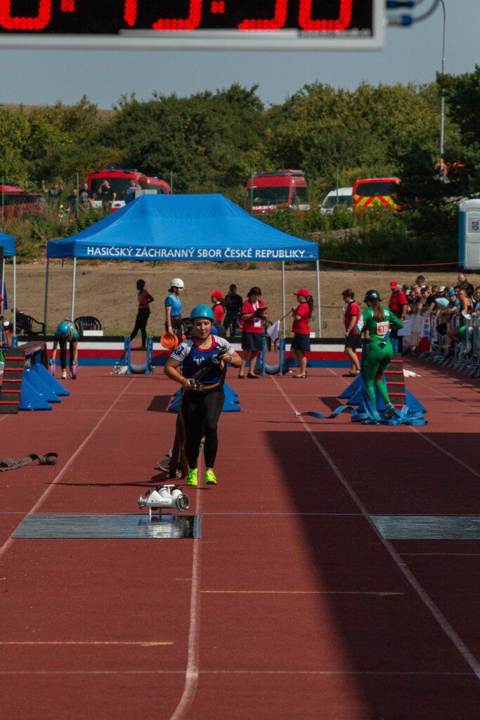V neděli nás čekaly požární útoky – disciplína, ve které jsme si věřily nejvíce. Našim cílem bylo zaběhnout hezký čas, ideálně takový, který by stačil na bednu.