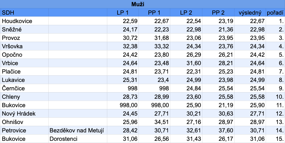 Pravidla: dle pravidel Podorlické hasičské ligypravidel Velké Ceny OSH Náchod